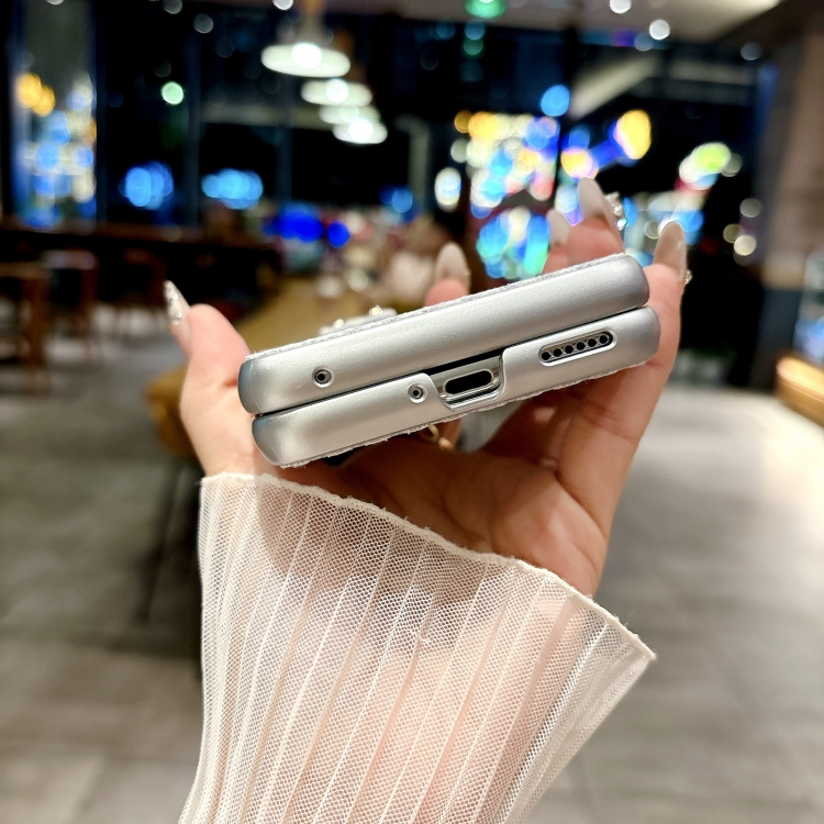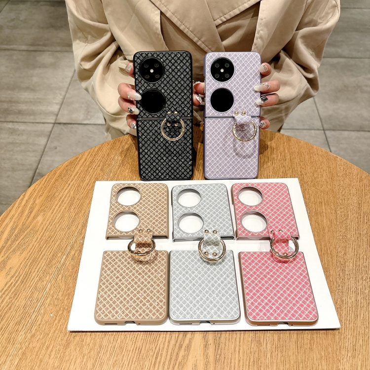 Funda para Huawei P50 Pocket con Diseño de Rombos, Diamantes Brillantes y Anillo (Negro)