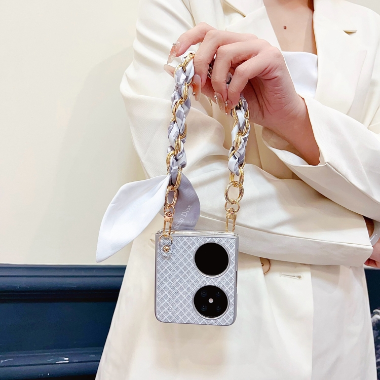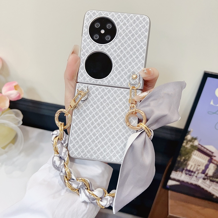 Funda para Teléfono Huawei Pocket 2 con Diseño de Rombos y Diamantes + Pulsera de Seda (Plateada)