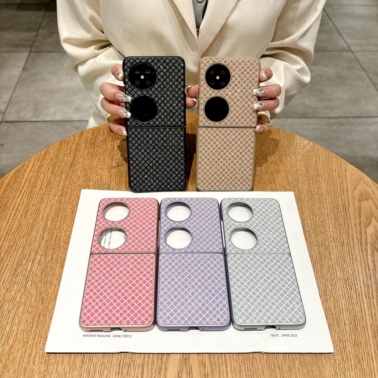 Funda para Teléfono Huawei Pocket 2 Diseño de Rombos y Diamantes Brillantes (Dorada)