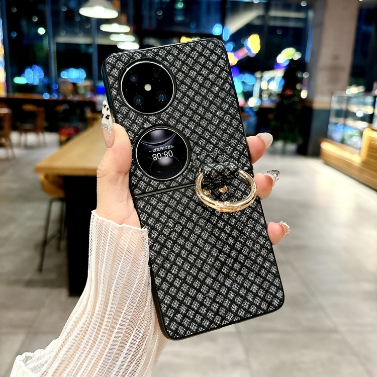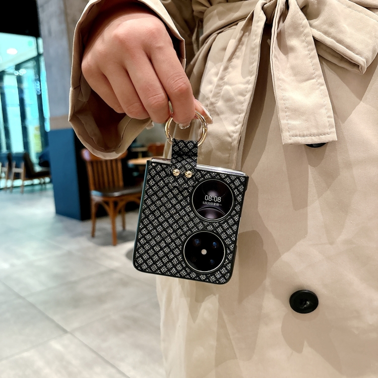 Funda para Teléfono Huawei Pocket 2 con Diseño de Rombos, Diamantes Brillantes y Anillo (Negro)