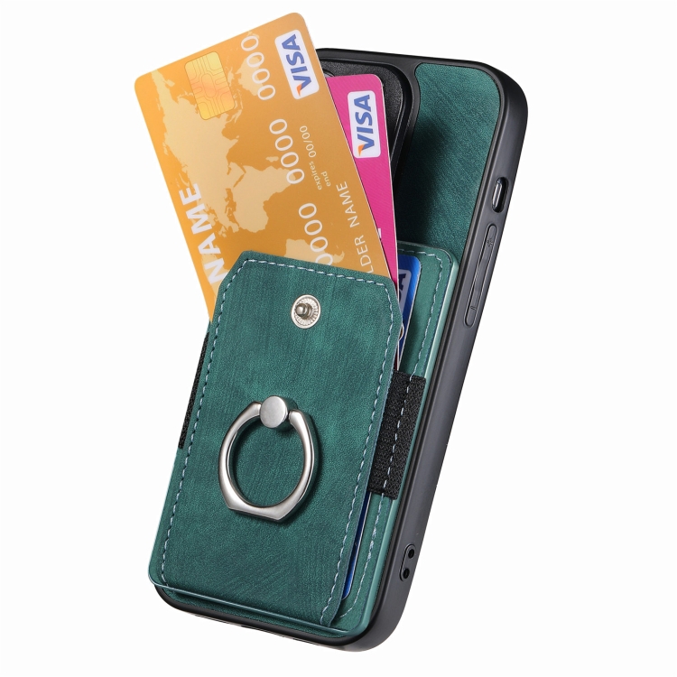Funda para Teléfono Tipo Billetera con Anillo y Tarjetero para iPhone 16 Pro Max (Verde)