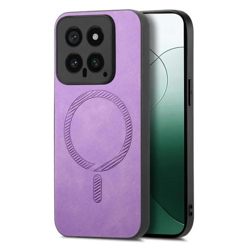 Funda Para Teléfono Xiaomi 14 Pro 5G Con Tapa Trasera De Pu Magsafe De Color Sólido Retro (Morado)