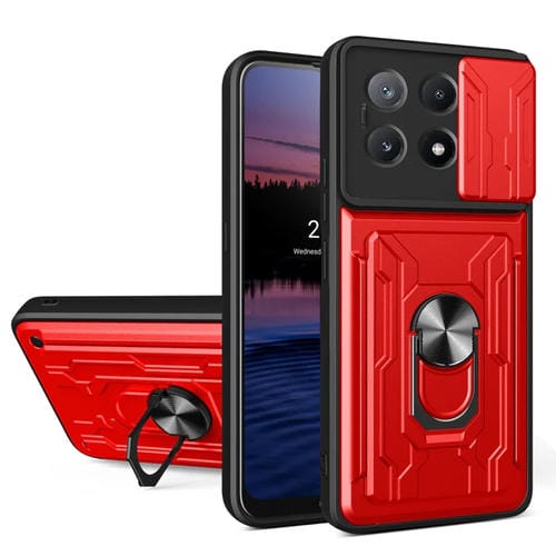 Funda para Teléfono Xiaomi Poco X6 Pro con Ranura para Tarjeta y TPU + PC Deslizante (Rojo)