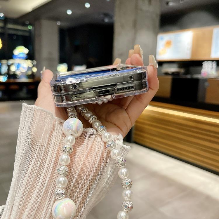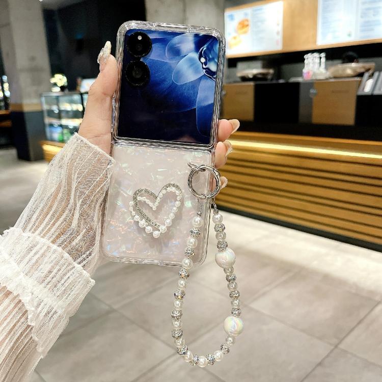 Funda para Xiaomi Mix Flip con textura perlada y diseño de corazón, con pulsera (blanca)