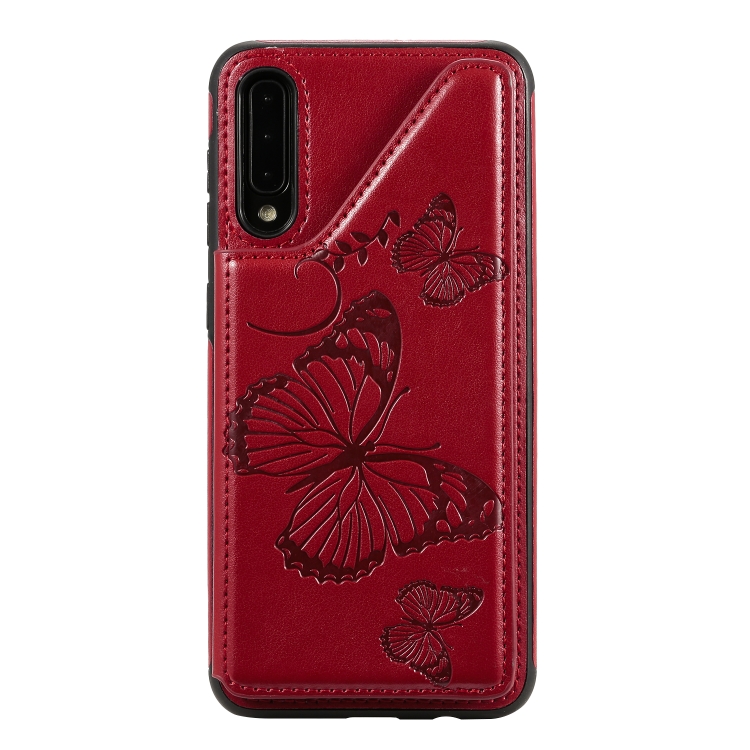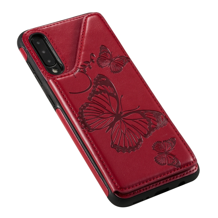 Funda Protectora Galaxy A50 Patrón Mariposa Soporte Ranuras Tarjetas Marco Fotos (Rojo)