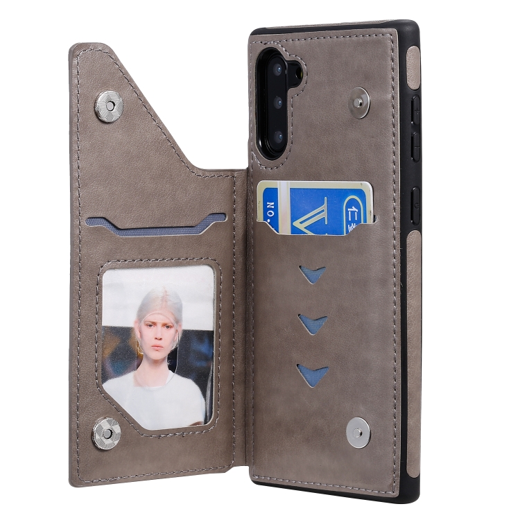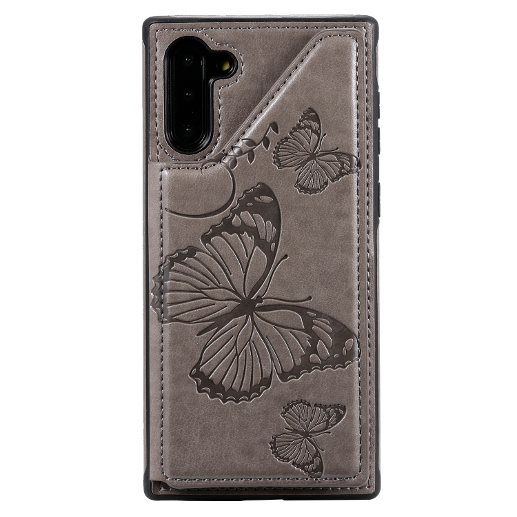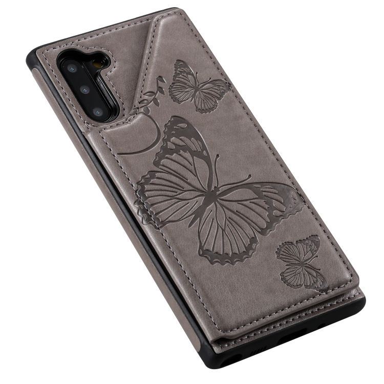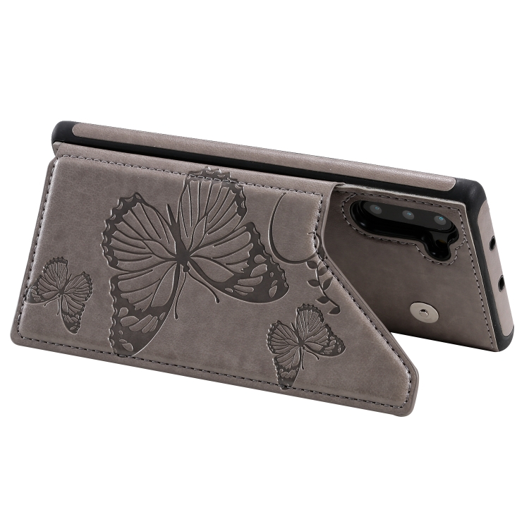 Funda Protectora Galaxy Note10 Patrón Mariposa con Soporte Ranuras y Marco de Fotos (Gris)