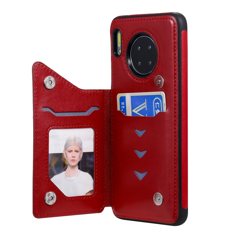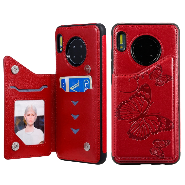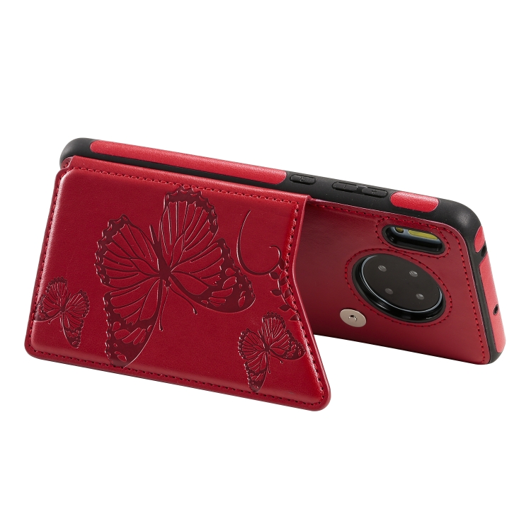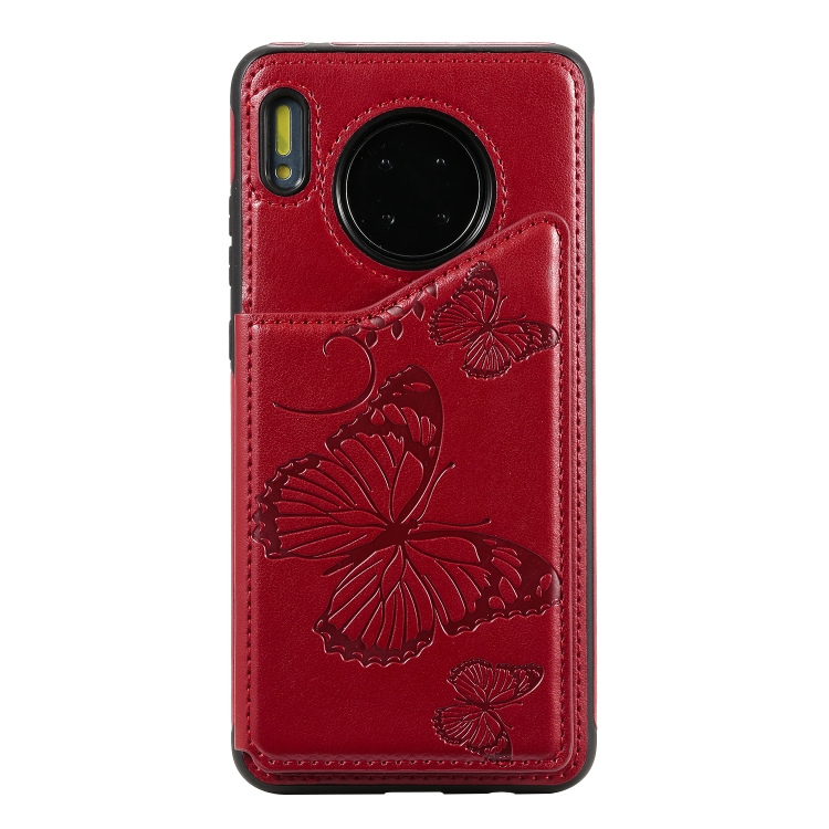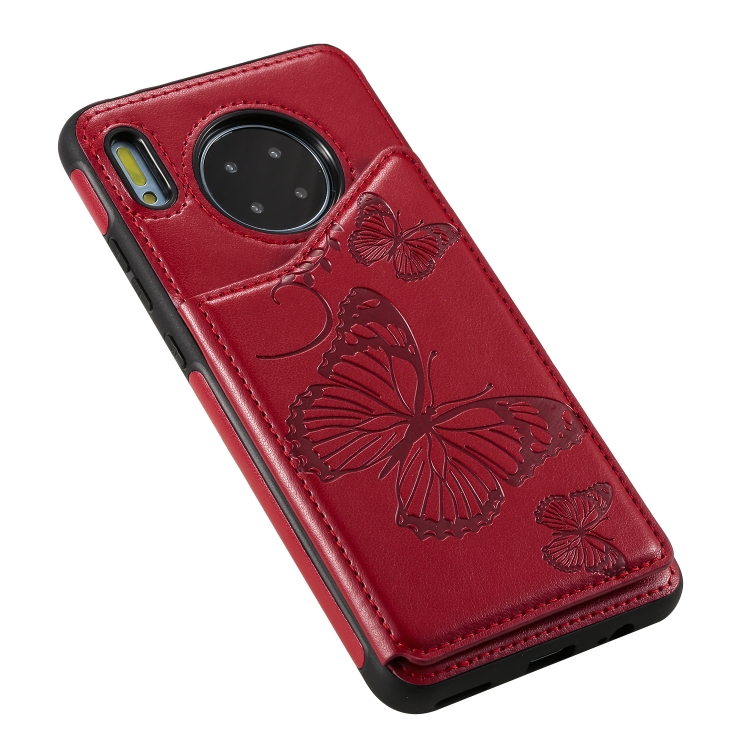 Funda Protectora Huawei Mate30 Patrón Relieve Mariposa Soporte Ranuras Tarjetas Marco Fotos (Rojo)