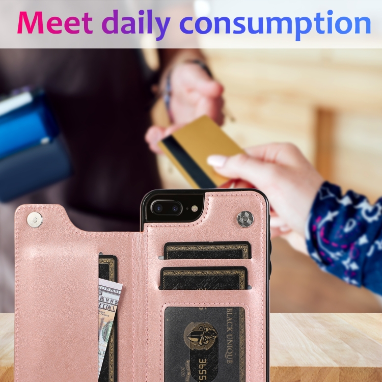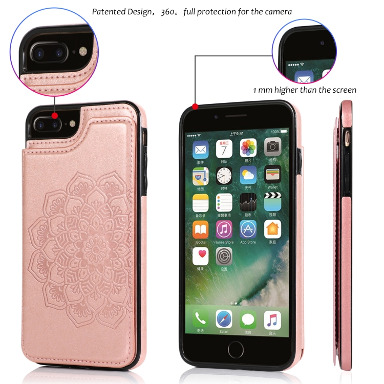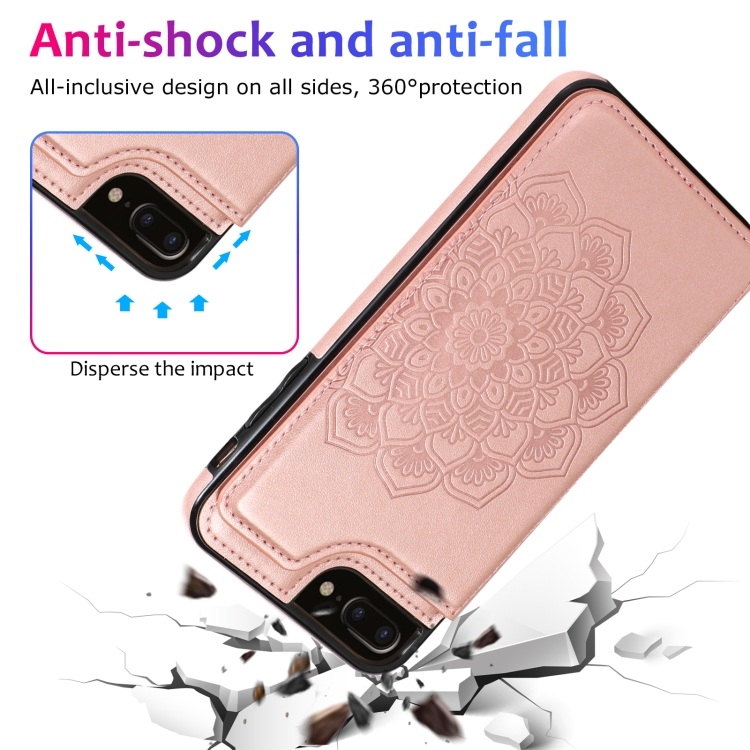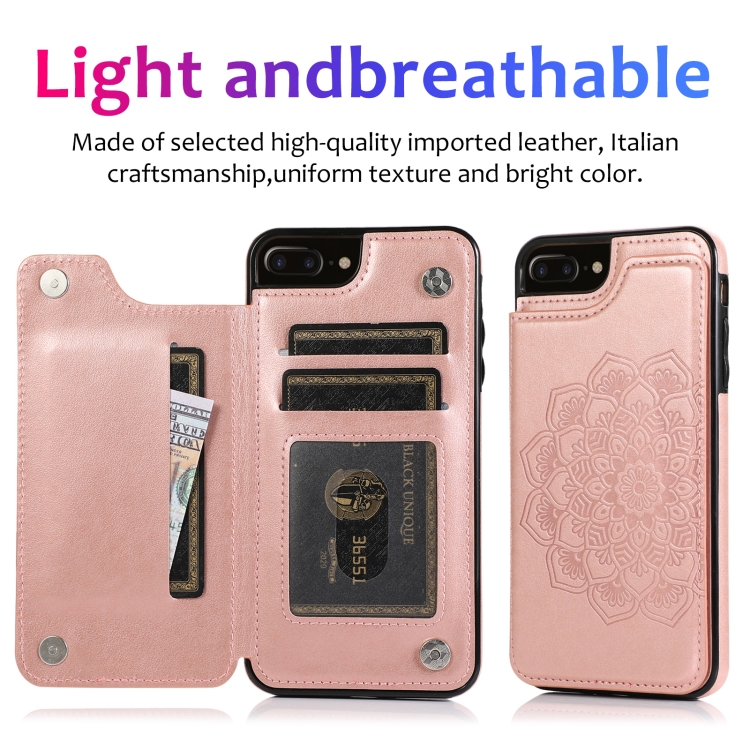 Funda Protectora PU + TPU Mandala Doble Hebilla Ranuras Tarjetas Soporte Marco Fotos iPhone 7 Plus 8 Plus (Oro Rosa)
