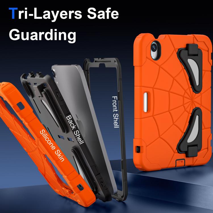 Funda Protectora para iPad Mini 2024 Mini 6 Silicona y Policarbonato a Prueba de Golpes (Naranja y Negro)