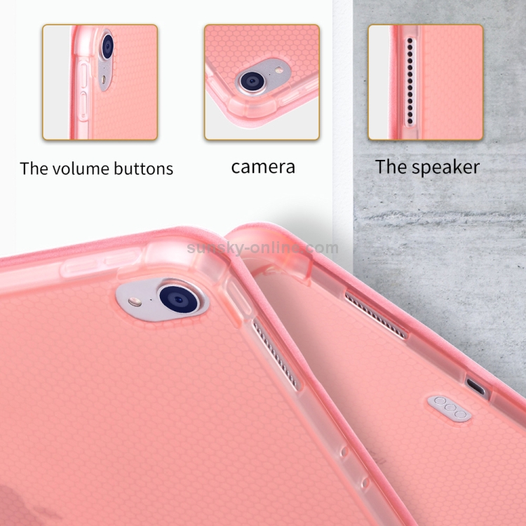 Funda Protectora de TPU para iPad Pro 11 Pulgadas (2018) / (2020) Tres Plegables con Soporte y Ranura para Bolígrafo (Oro Rosa)