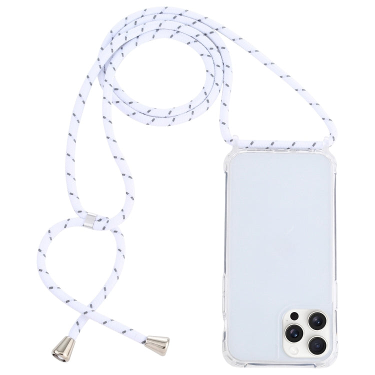 Funda Protectora para iPhone 16 Pro Acrílico Transparente a Prueba de Golpes con Cordón (Grano Rugoso Blanco y Gris)