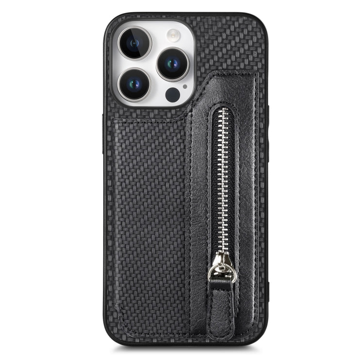 Funda Tipo Billetera con Cremallera y Tapa Horizontal de Fibra de Carbono para iPhone 16 Pro (Negra)