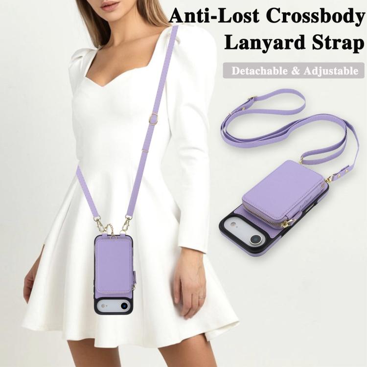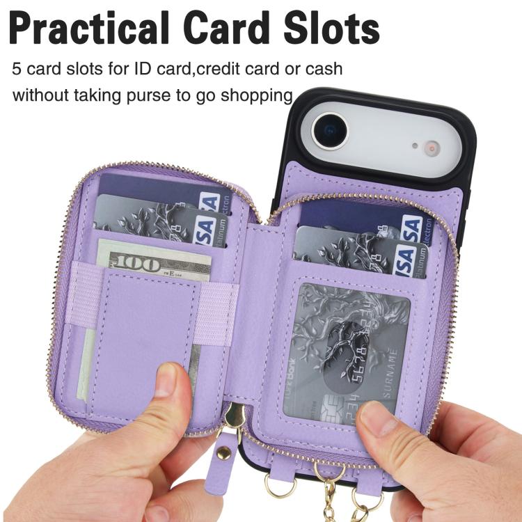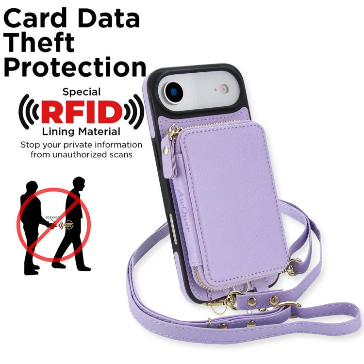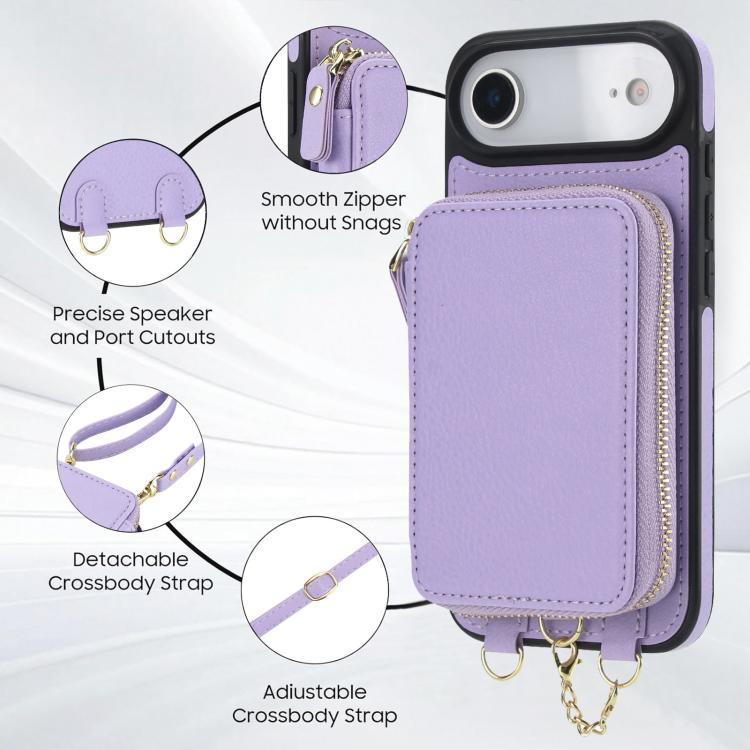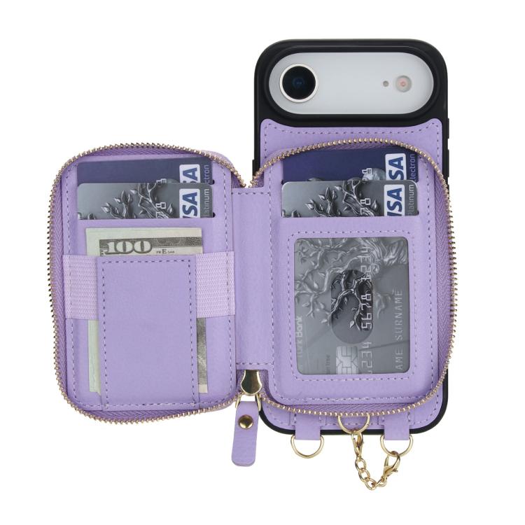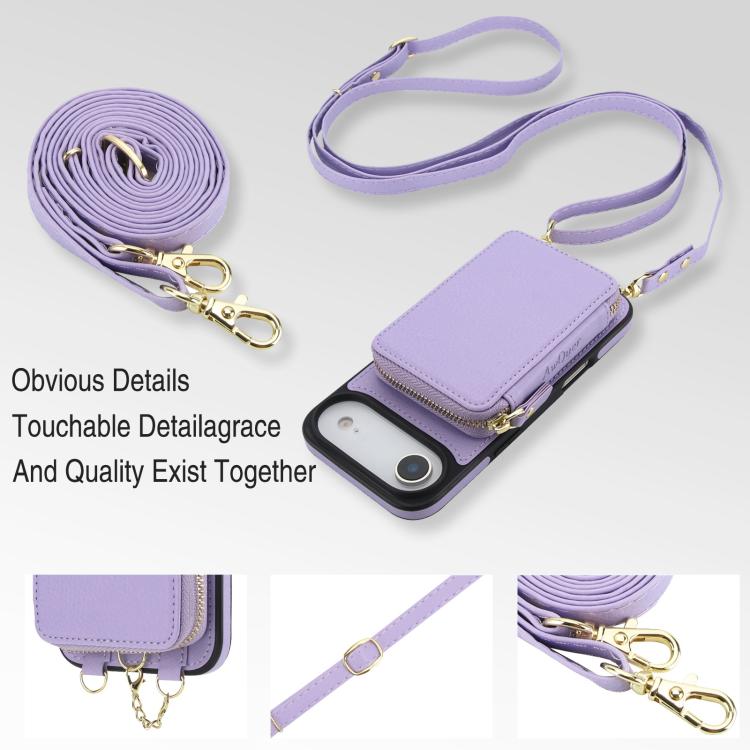 Funda tipo cartera bandolera con cremallera 2 en 1 AwQuer para iPhone Air con parte trasera de cuero (morado claro)