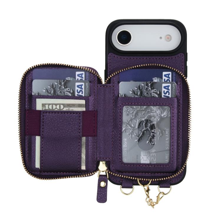 Funda tipo cartera bandolera con cremallera 2 en 1 AwQuer para iPhone Air, con parte trasera de cuero (morado oscuro).