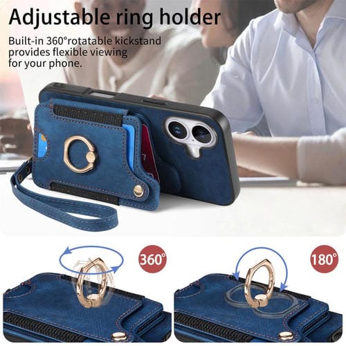 Funda tipo cartera con anillo multitarjeta y diseño retro para iPhone 17 (azul)