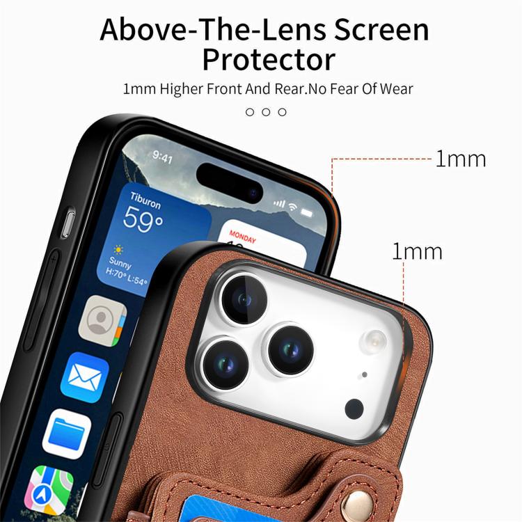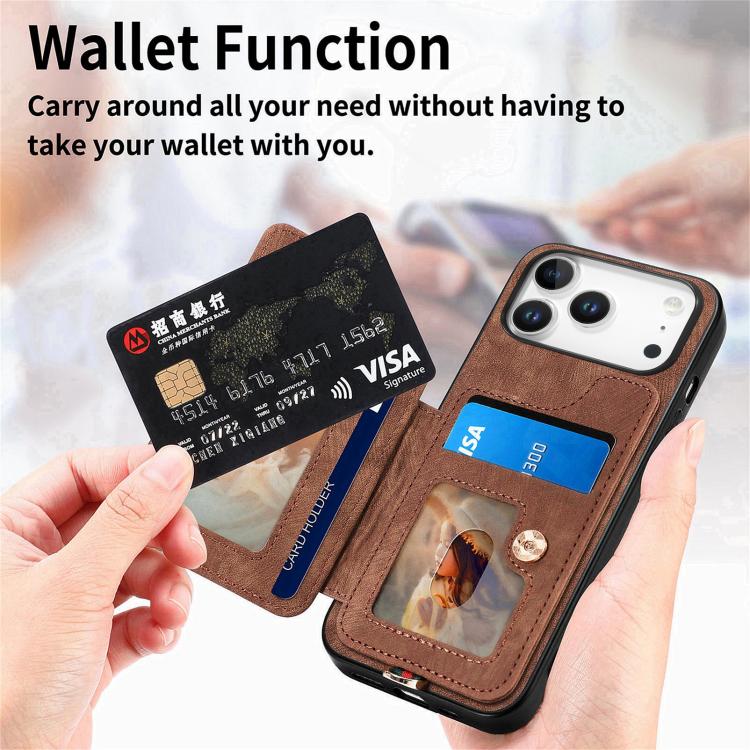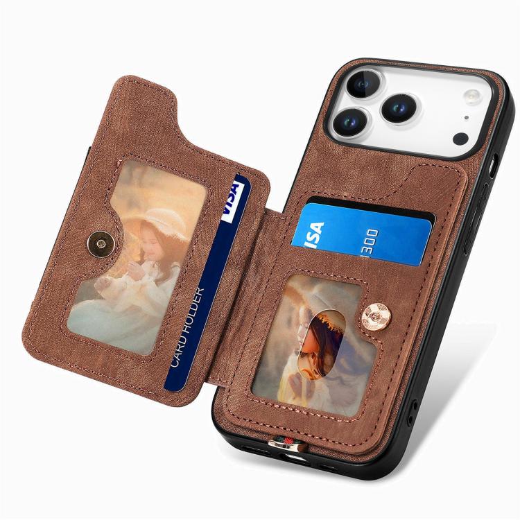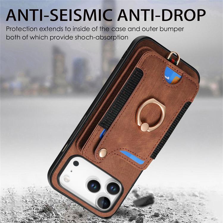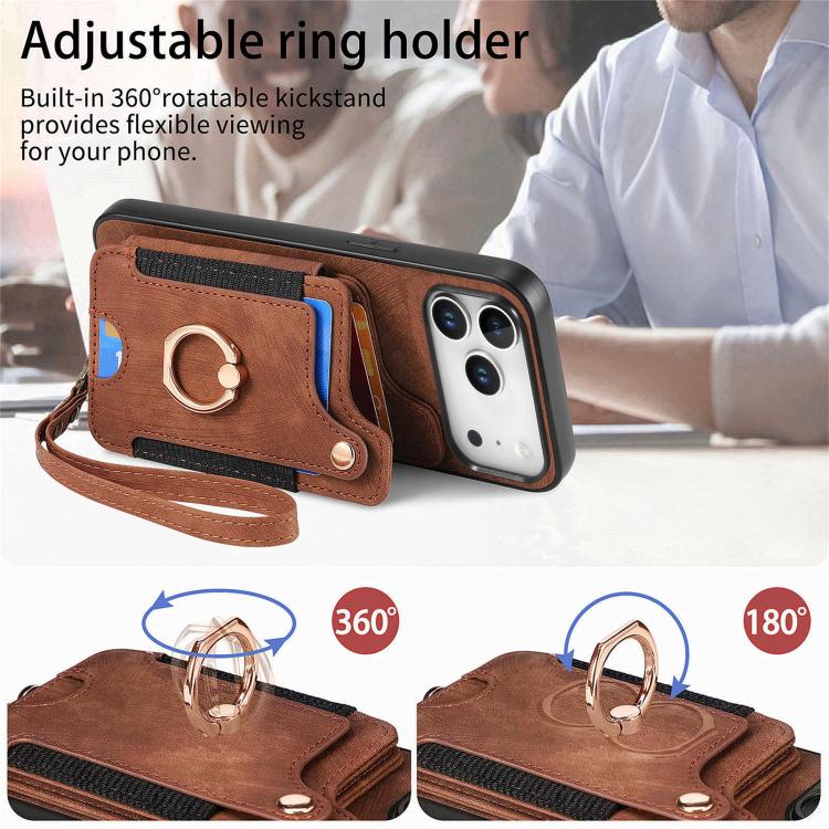 Funda tipo cartera con anillo multitarjeta y diseño retro para iPhone 17 Pro Max (marrón)