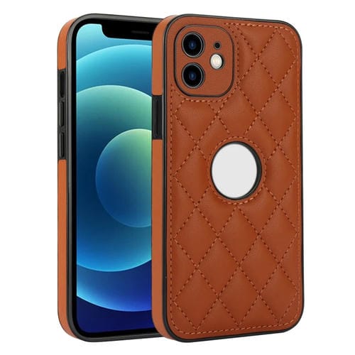 Funda Trasera de Cuero para iPhone 12 Diseño de Rombos (Marrón)