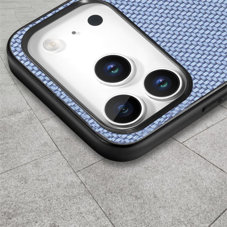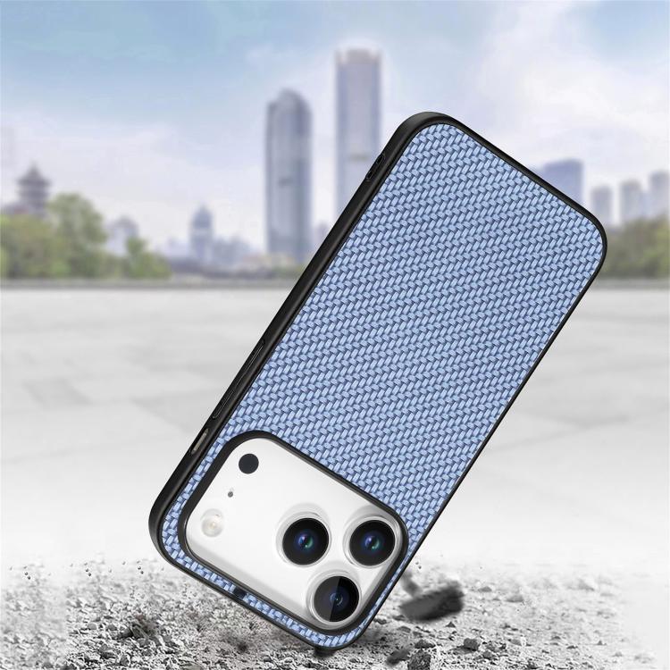 Funda trasera de cuero con textura de fibra de carbono para iPhone 17 Pro (azul)