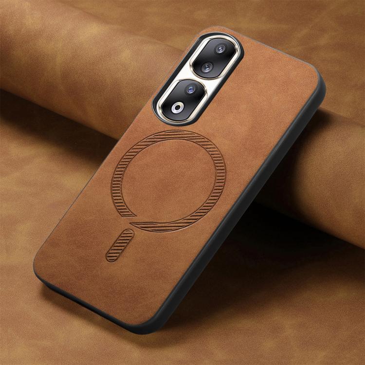 Funda Trasera Magnética PU para Honor 90 Pro 5G con Magsafe (Marrón) Estilo Retro