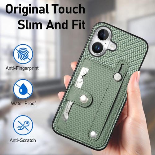Funda trasera tipo billetera con soporte para tarjeta y correa para muñeca para iPhone 17, con cúter (verde)
