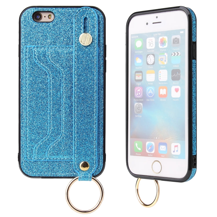 Funda Protectora Glitter Powder Pu + TPU para iPhone 6 / 6S con Soporte Ranuras Tarjetas y Correa (Azul)