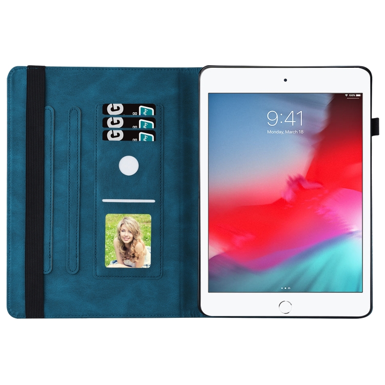 Estuche de Tableta Cuero Inteligente iPad Mini 2019/4/3/2/1 en Relieve Mariposa (Azul)