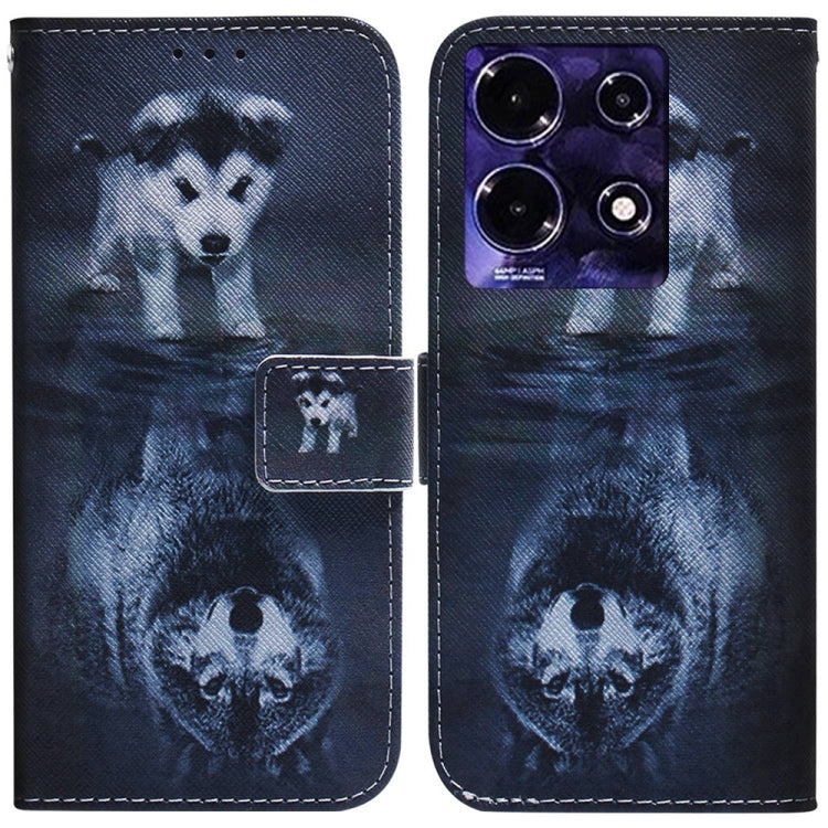 Estuche para Infinix Note 30I de Cuero con Tapa y Dibujo Coloreado (Lobo y Perro)