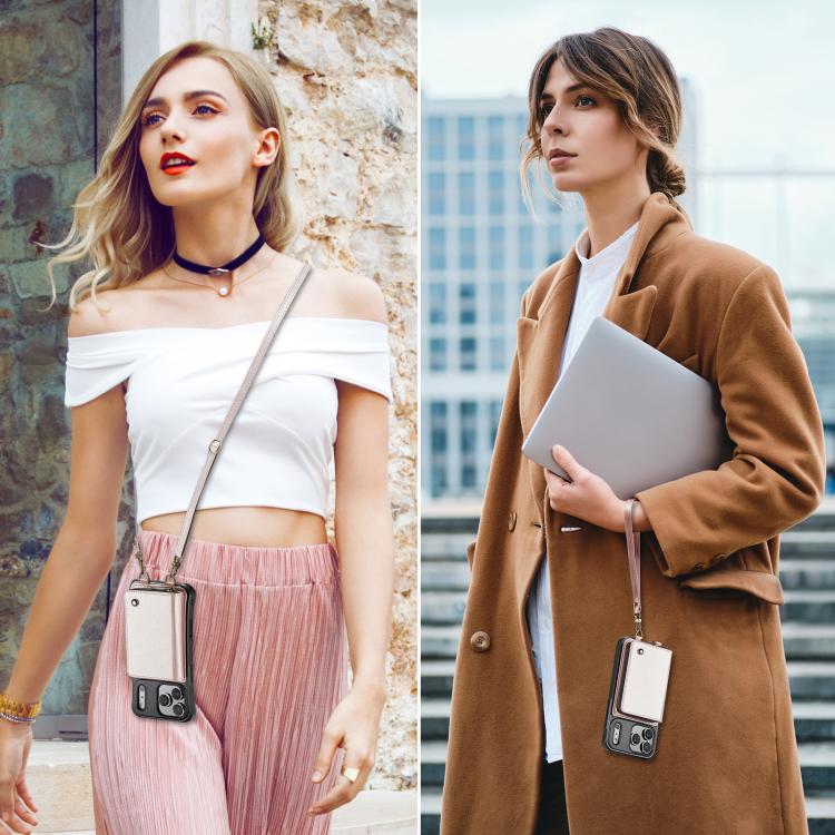 JEEHOOD C22 Series - Funda de cuero con cremallera y doble cordón para iPhone 17 Pro Max (oro rosa)
