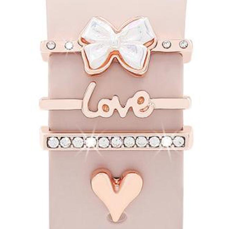Juego de 4 correas de silicona universales para reloj inteligente, accesorios de metal decorativos (corazón de amor, oro rosa)