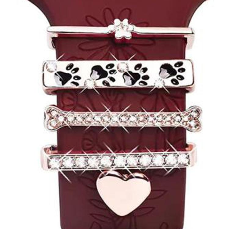 Juego de 5 correas de silicona universales para reloj inteligente, anillo decorativo de metal, estilo: oro rosa 8