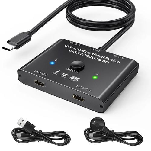 • 1x Conmutador Bidireccional Divisor HD 10 Gbps Tipo-C USB-C KC-C201 8K30