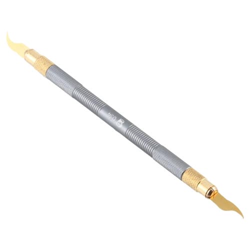 El Juego de Cuchillos Mechanic 034 es una herramienta profesional diseñada para facilitar la extracción de pegamento y la manipulación precisa en reparaciones electrónicas. Fabricado con acero AAAA importado de 0,1 mm, este Conjunto ofrece una combinación óptima de Flexibilidad y resistencia al desgaste y al calor. Su diseño ergonómico con doble asa y líneas finas antideslizantes proporciona un agarre cómodo y seguro, ideal para trabajos delicados como desmontar capas de chip en Placas Base o cortar Adhesivos. La superficie cuenta con un tratamiento molecular de capa de níquel estandarizado de 5UM chapado en oro, que asegura protección contra la oxidación y corrosión, garantizando durabilidad y fiabilidad en el uso. Este set es compatible de forma genérica, adecuado para usuarios que realizan reparaciones por cuenta propia o profesionales que requieren precisión y calidad en sus herramientas.