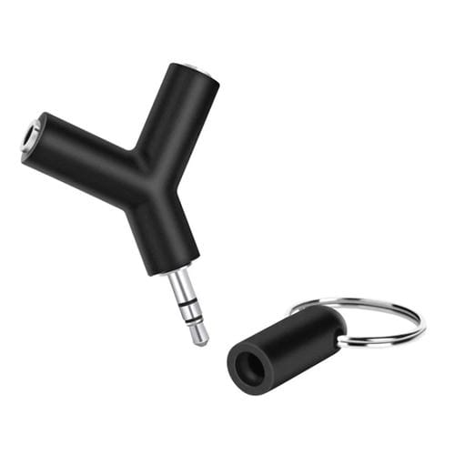 Adaptador Jack Audio Mini 3,5mm Macho a Doble 3,5mm Hembra Auriculares Conector Llavero (Negro)