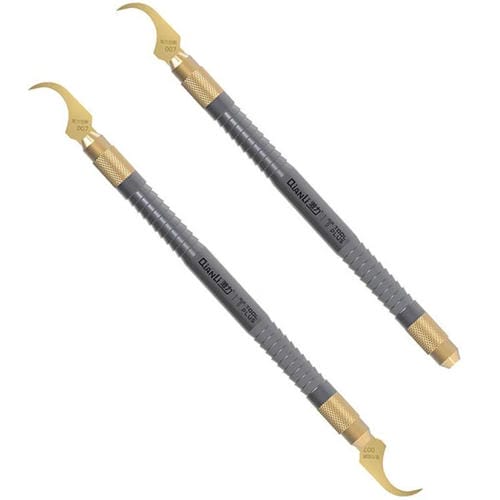 El cuchillo multifuncional Qianli 007 es una herramienta especializada diseñada para la reparación y mantenimiento de Placas Base, especialmente en la limPieza de pegamentos y residuos en chips BGA y CPUs IC. Su hoja delgada permite una manipulación precisa para remover pasta de soldadura y pegamento UV sin dañar los componentes delicados de dispositivos electrónicos. Compatible con diversas Placas Base y chips, este cuchillo es ideal para técnicos y usuarios que reparan por cuenta propia que requieren una herramienta compacta, profesional y Portátil para labores de limPieza y preparación en procesos de reparación electrónica.