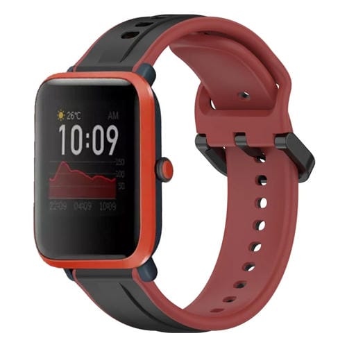 Correa de Reloj Amazfit Bip 1S Silicona Dos Colores Bucle Convexo 20mm (Negro + Rojo)