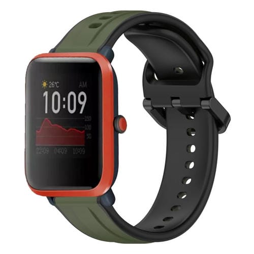 Correa de Silicona para Amazfit Bip 1S de 20mm con Bucle Convexo (Verde Oscuro + Negro)