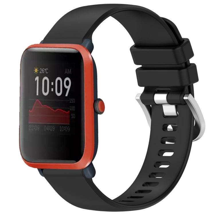 Correa de Reloj Amazfit Bip / Bip Lite / Bip 1S Silicona Hebilla Plateada 20mm (Negro)