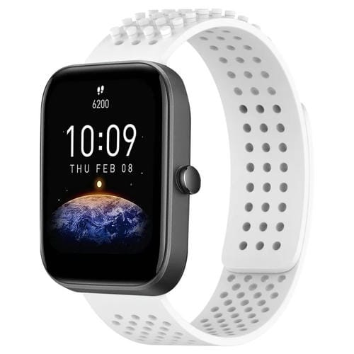 Correa de Silicona para Amazfit Bip3 con Puntos 3D Transpirables y Orificios 20mm (Blanco)