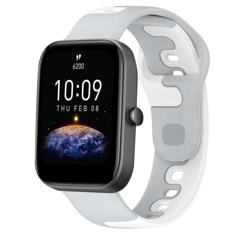 Para Amazfit Bip3 Correa de Reloj de Silicona de Doble Color de 20mm (Gris + Blanco)