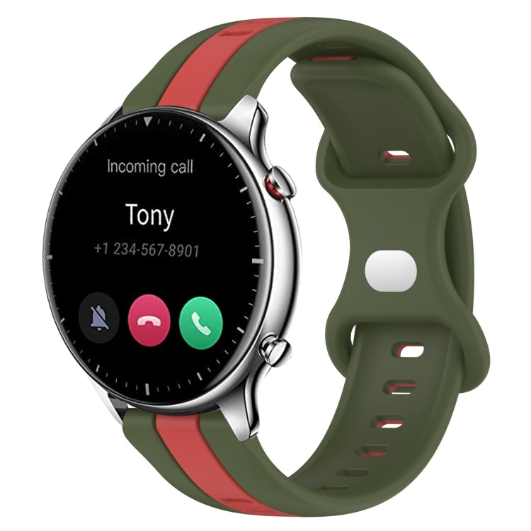 Correa de Silicona para Amazfit GTR 2 22mm con Hebilla de Mariposa y Dos Colores (Rojo + Verde Militar)