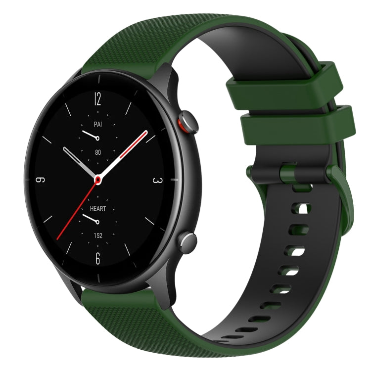 Correa de Silicona para Amazfit GTR 2E 22mm Dos Colores a Cuadros (Amy Green + Black)