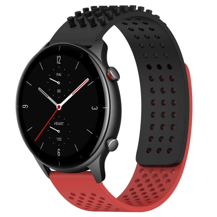 Correa de Reloj para Amazfit GTR 2E Silicona Puntos 3D Transpirables Orificios 22mm (Negro + Rojo)