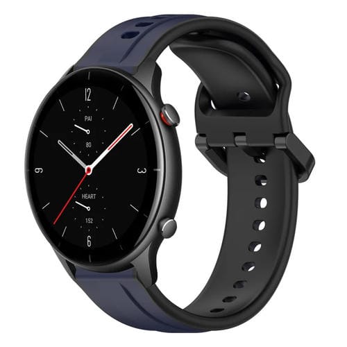 Correa de Silicona para Amazfit GTR 2E 22mm con Bucle Convexo (Azul Medianoche + Negro)