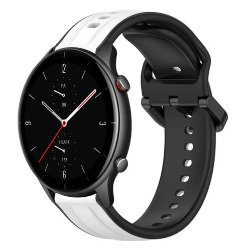 Correa de Silicona para Amazfit GTR 2E 22mm con Bucle Convexo (Blanco + Negro)