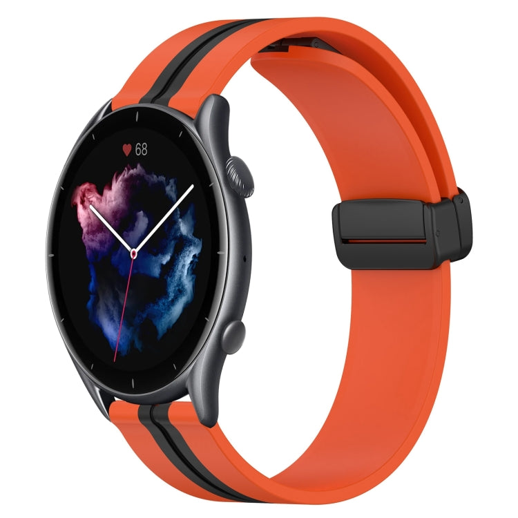 Correa de Reloj de Silicona para Amazfit GTR 3 22mm con Cierre Magnético Plegable (Naranja + Negro)