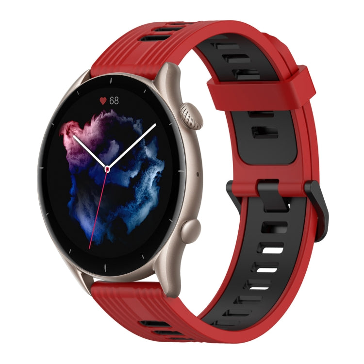 Correa de Reloj Amazfit GTR 3 22mm Silicona Patrón Vertical Dos Colores (Rojo + Negro)