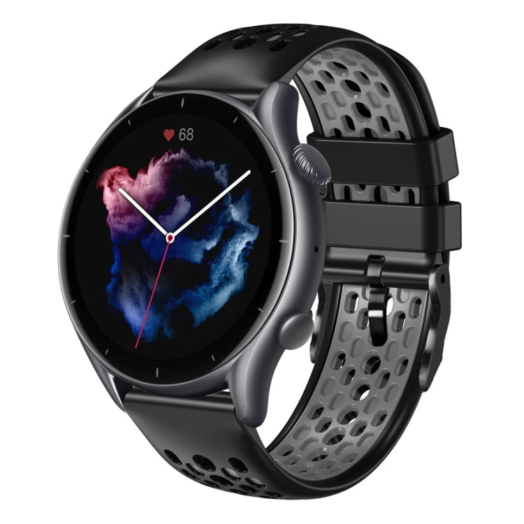 Correa de Silicona para Amazfit GTR 3 Pro 22mm Transpirable Dos Colores (Negro + Gris)