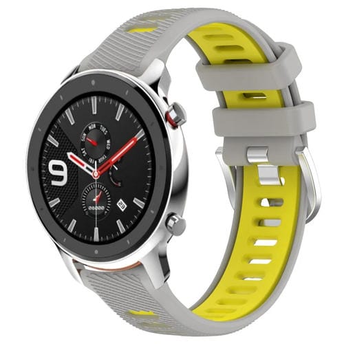 Correa de Reloj Amazfit GTR 4 22mm Silicona Dos Colores con Hebilla de Acero (Gris + Amarillo)