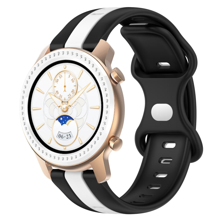 Correa de Silicona para Amazfit GTR 42mm 20mm con Hebilla de Mariposa (Negro + Blanco)