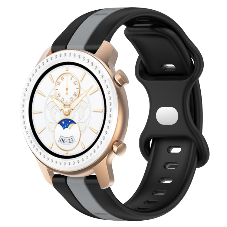Correa de Silicona para Amazfit GTR 42mm 20mm con Hebilla de Mariposa (Negro + Gris)